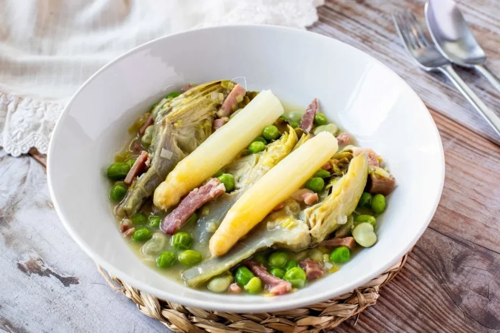 Plato que aúna las mejores verduras de la huerta navarra. Se dice que la auténtica menestra tudelana lleva 4 verduras que son el espárrago, la alcachofa, guisantes y habas. A ésta se le puede añadir ajo para darle un extra de sabor.